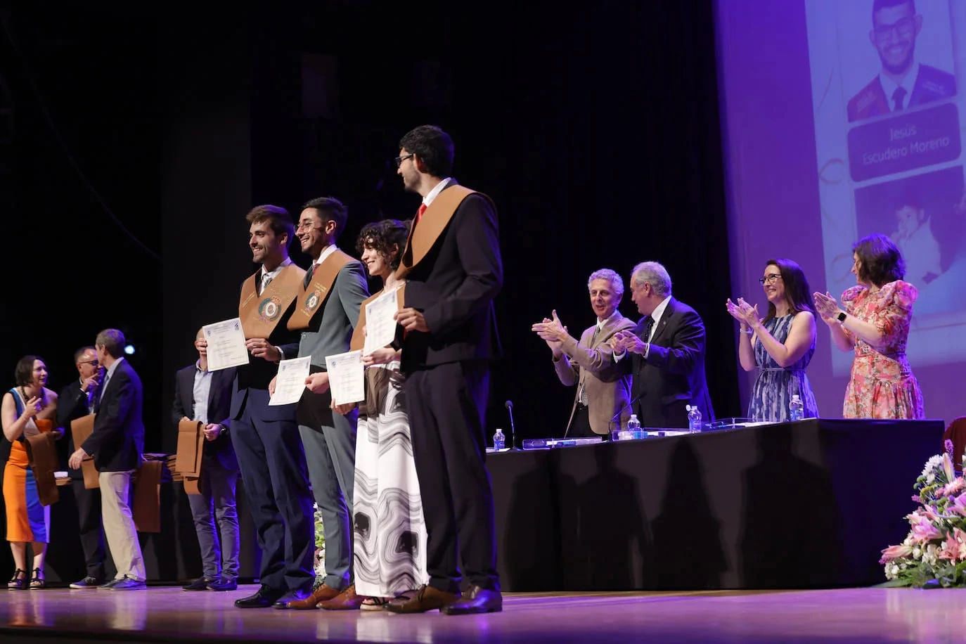 The ceremony began shortly after, with the usual speeches from some professors and alumni. But the highlight was when two of my classmates, Manu and Arturo, took the stage to deliver their humorous speech. They had prepared it the night before, and although it was a bit improvised, it turned out to be one of the most memorable moments of the day.